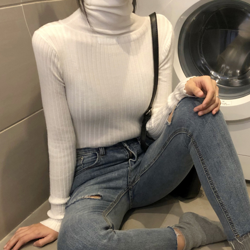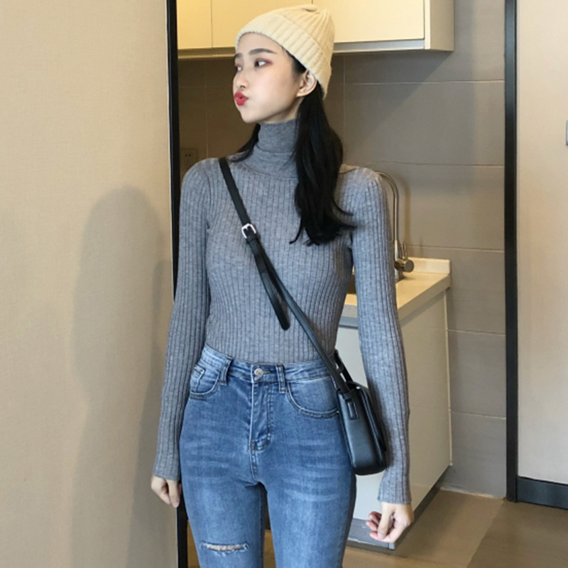 修身顯瘦高領外穿套頭毛衣女秋冬裝2018新款學生時尚黑色針織上衣
