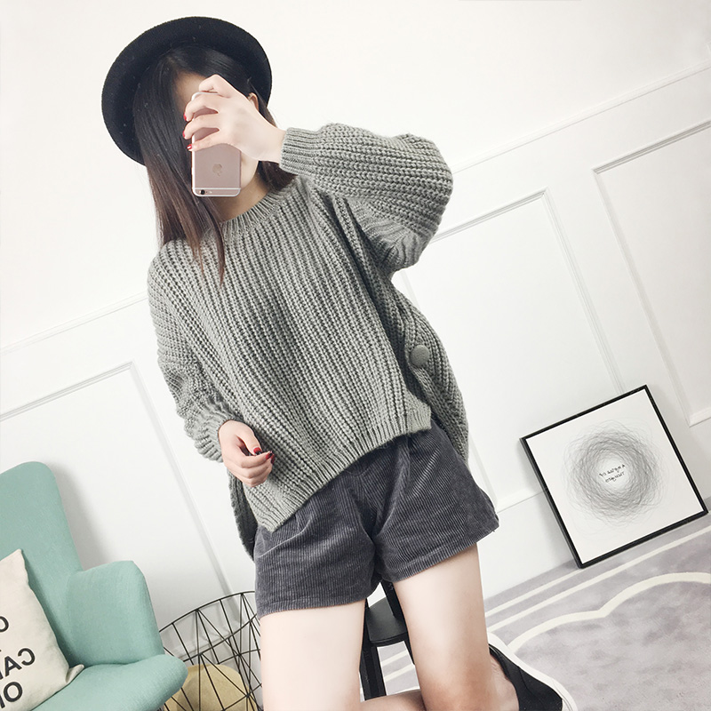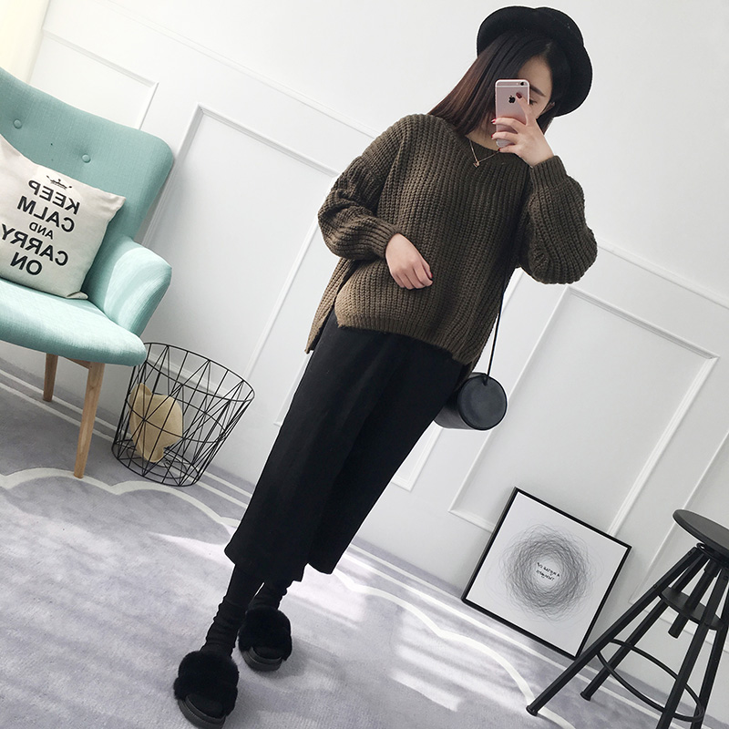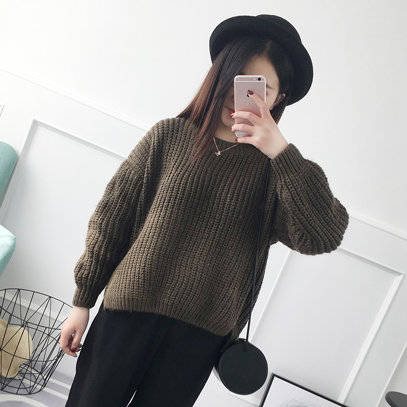 / 套頭毛衣女秋冬韓版短款寬松粗毛線純色針織衫女裝秋裝新款潮