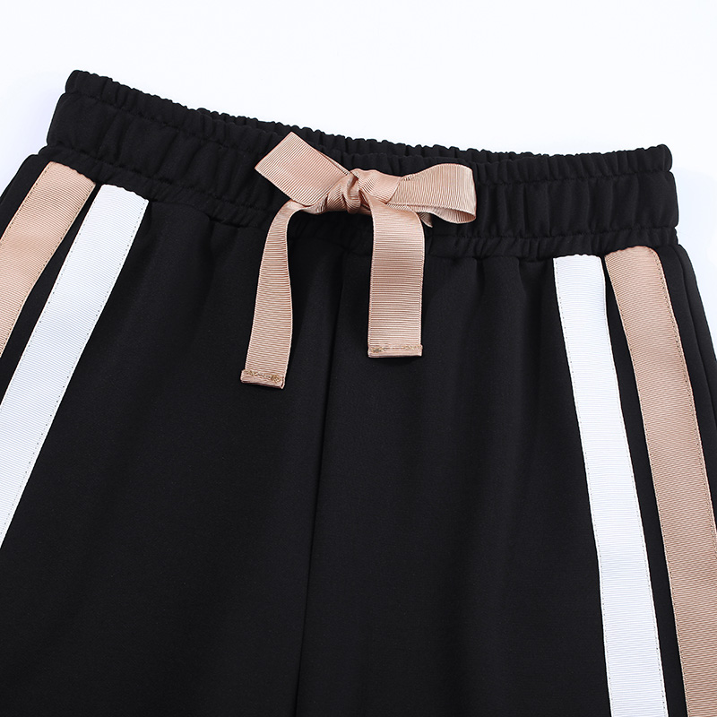 / 闊腿褲女九分褲高腰韓版學生顯瘦春裝新款百搭條紋寬松褲子夏