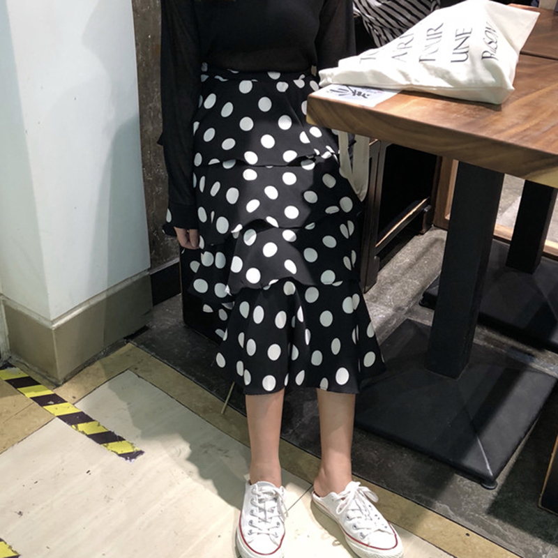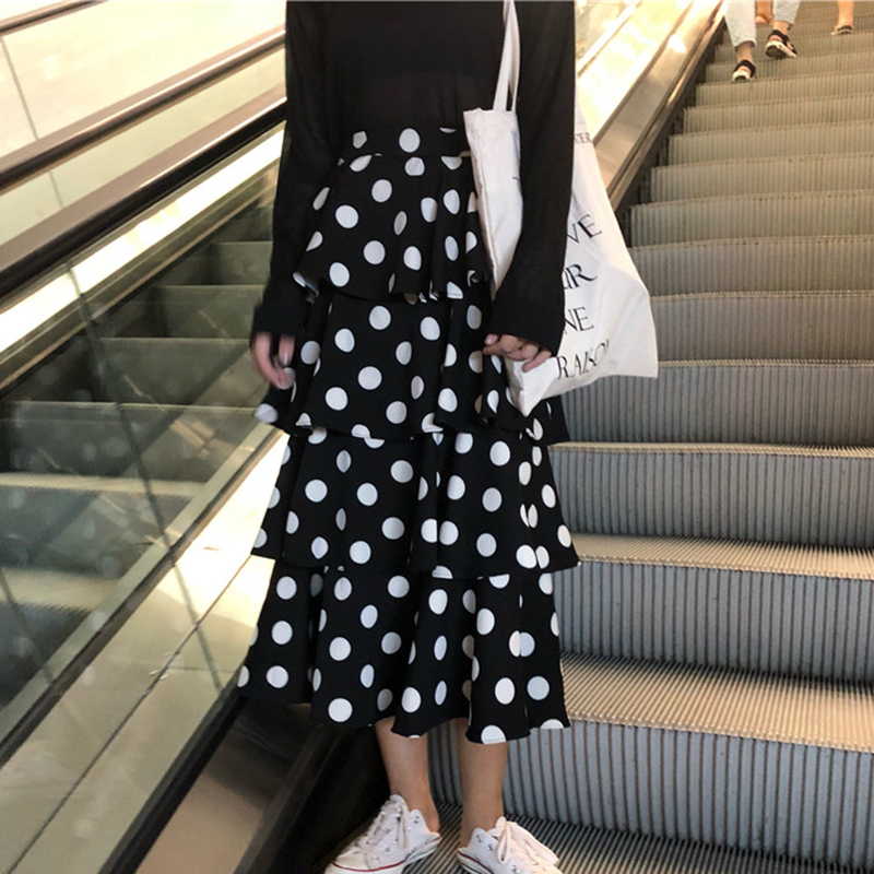 / 秋裝女新款韓版學生高腰氣質波點中長蛋糕裙洋氣時尚半身A字裙子
