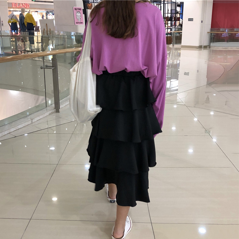 秋裝女新款韓版學生高腰氣質波點中長蛋糕裙洋氣時尚半身A字裙子