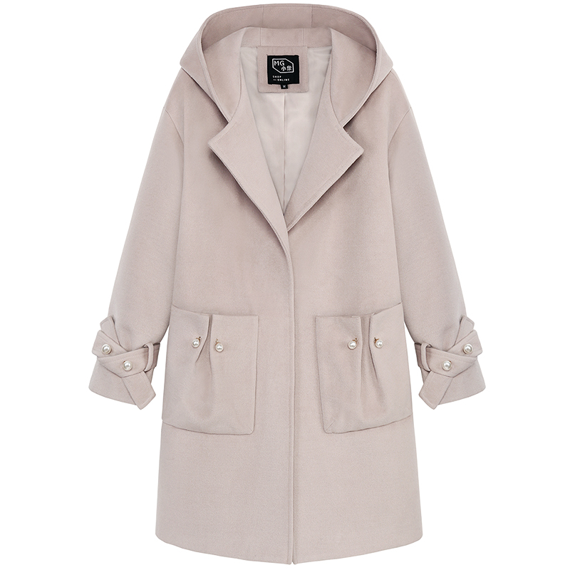 MG小象中長款冬季毛呢外套女新款中長款學生寬松2018流行呢子大衣