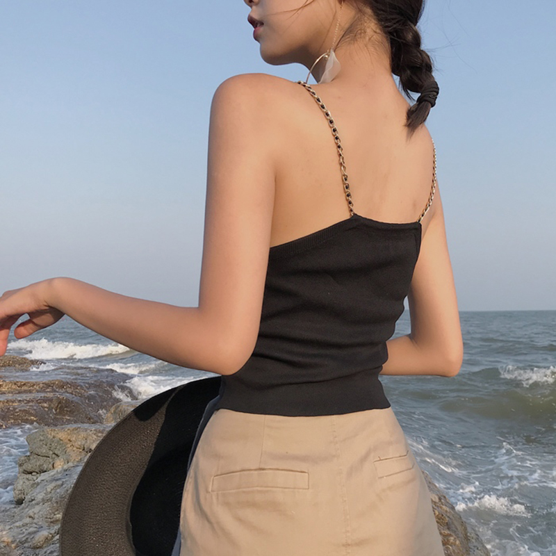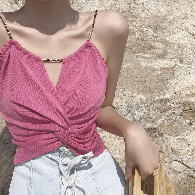 小背心女2018夏季新款女裝韓版扭結鏈條個性吊帶衫修身百搭露臍裝