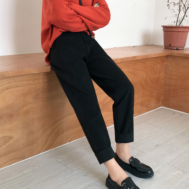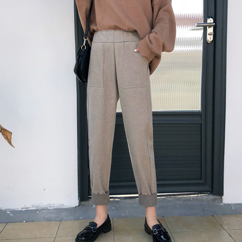 / 毛呢休閑褲女秋冬2018新款韓版小腳褲子學生呢子蘿卜褲女裝哈倫褲