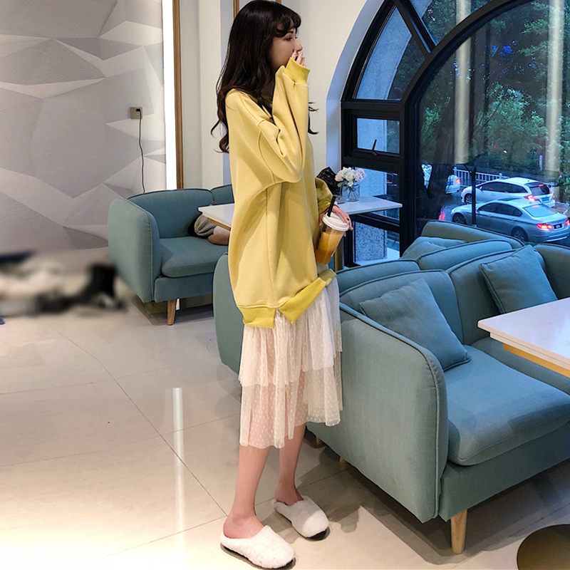/ 時尚拼接假兩件寬松連衣裙子女秋冬裝新款學生法式長袖egg桔梗裙