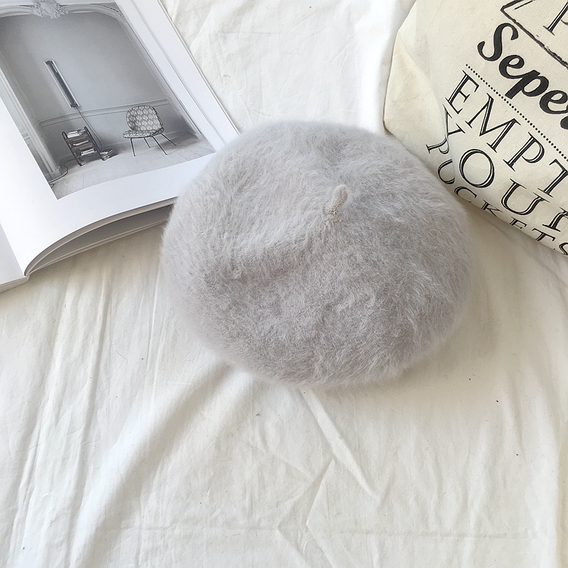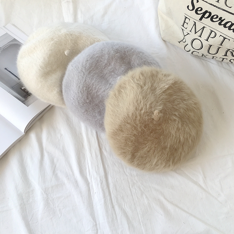 / 秋冬新款韓版復古chic風蓓蕾帽甜美純色加厚清新針織兔毛貝雷帽女