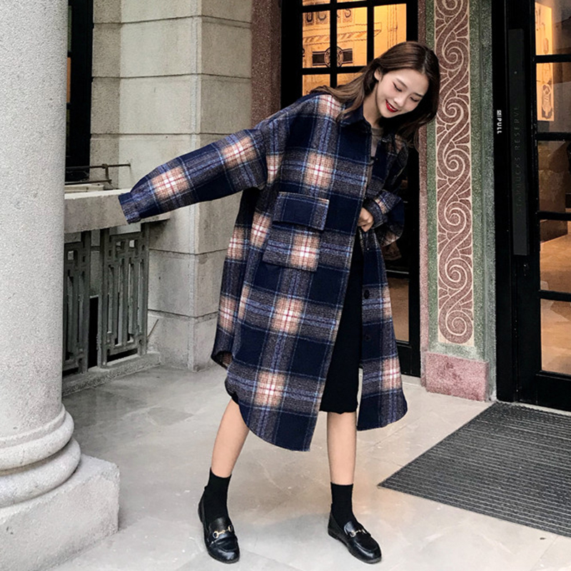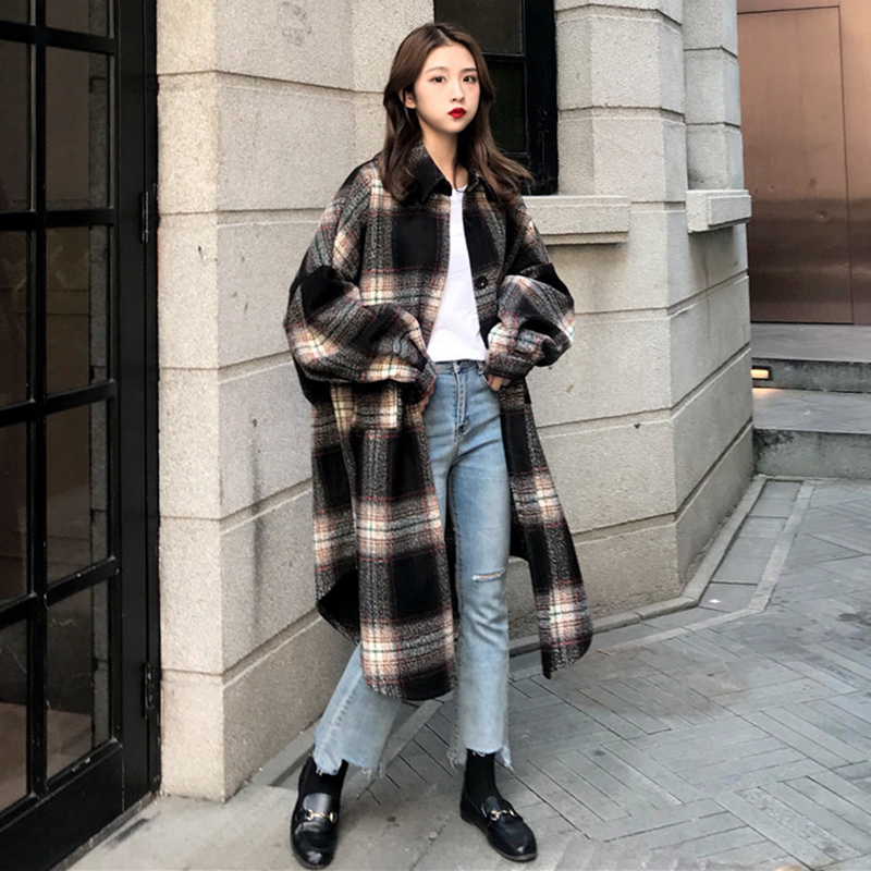 / chic風港味復古格子長袖襯衫女秋冬裝2018新款時尚百搭中長款外套
