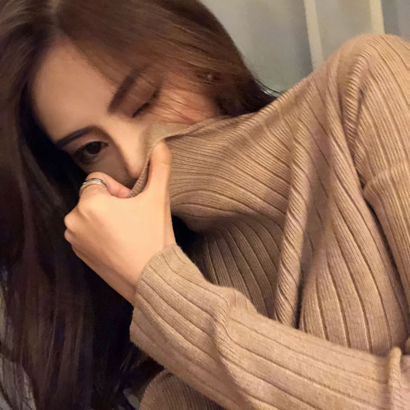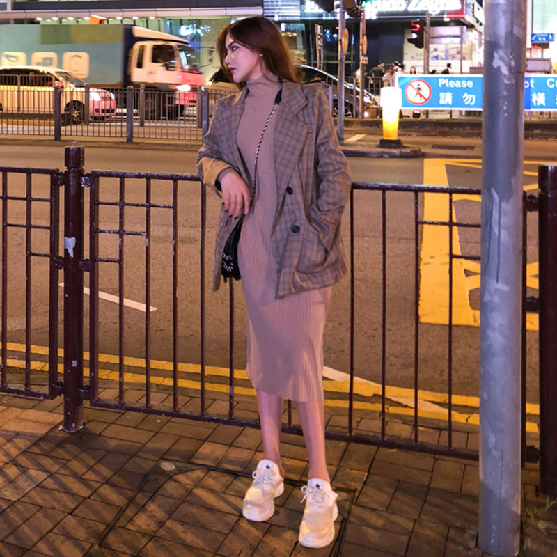 秋裝女新款修身顯瘦中長款高領長袖打底毛衣裙過膝包臀針織連衣裙