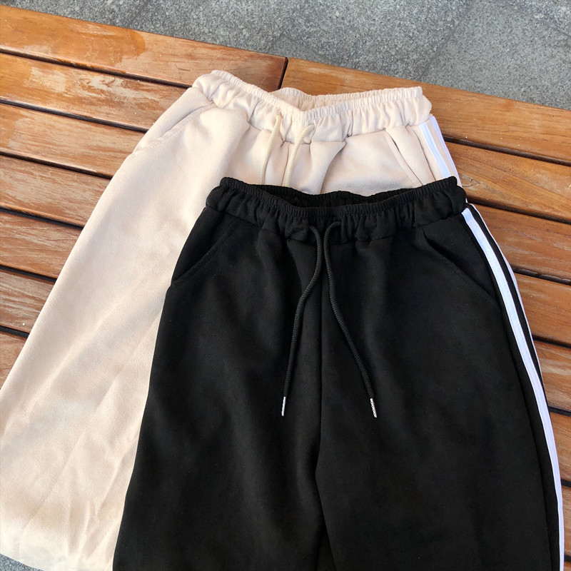 / 學生高腰休閑褲女秋冬裝2018新款韓版寬松顯瘦側面雙杠哈倫褲子潮