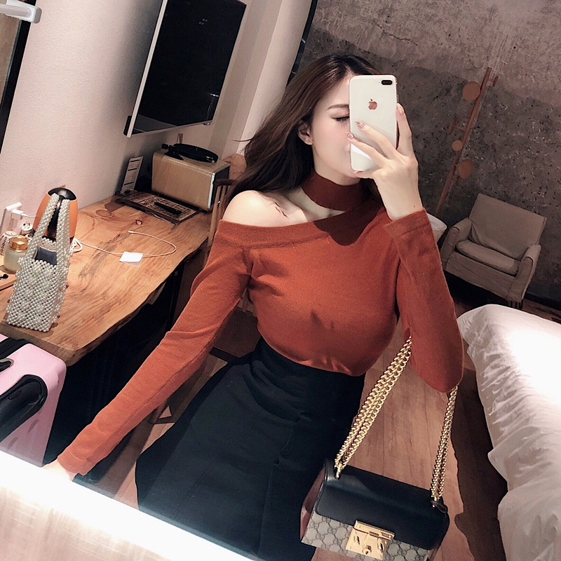 / chic早秋毛衣慵懶2018新款女時尚韓版修身顯瘦百搭露肩打底針織衫