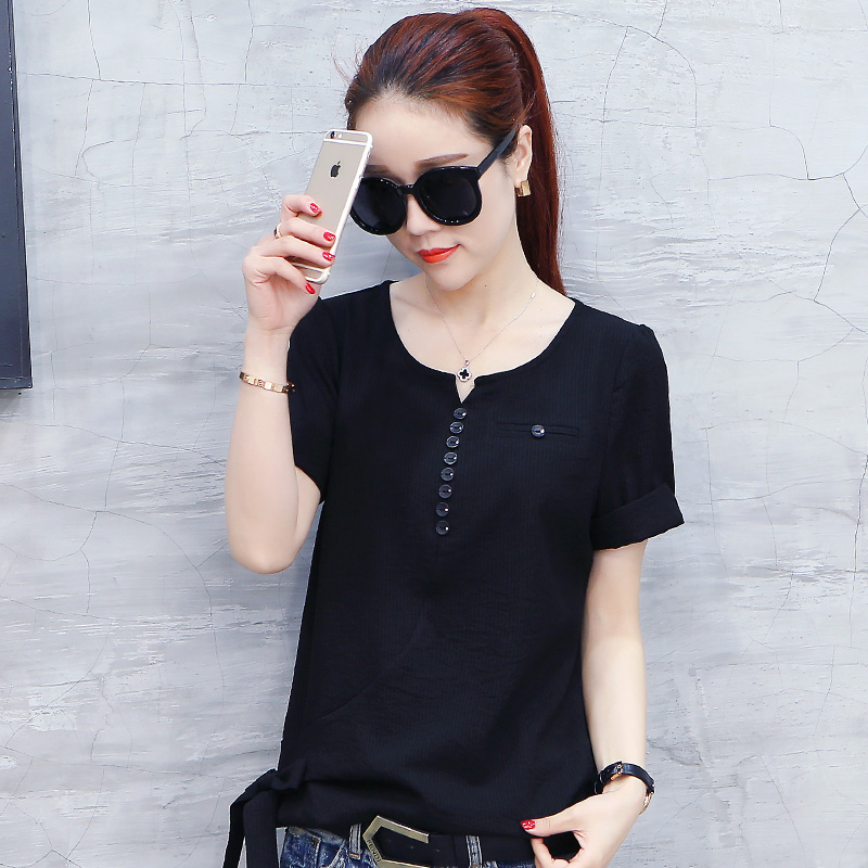 短袖t恤女寬松韓版百搭顯瘦女裝上衣2017夏裝新款氣質淑女雪紡衫