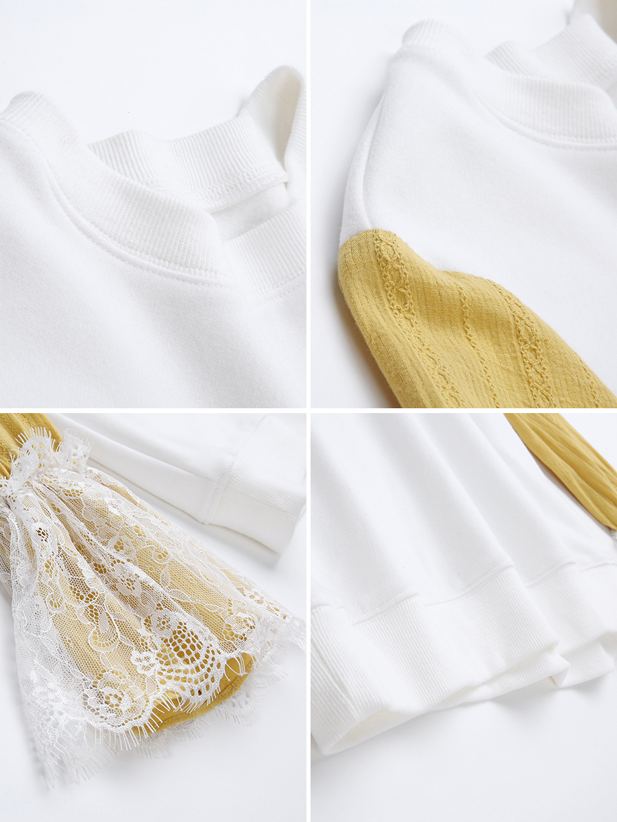 / MG小象拼接白色衛衣女長袖寬松秋冬2018新款休閑甜美小清新上衣潮