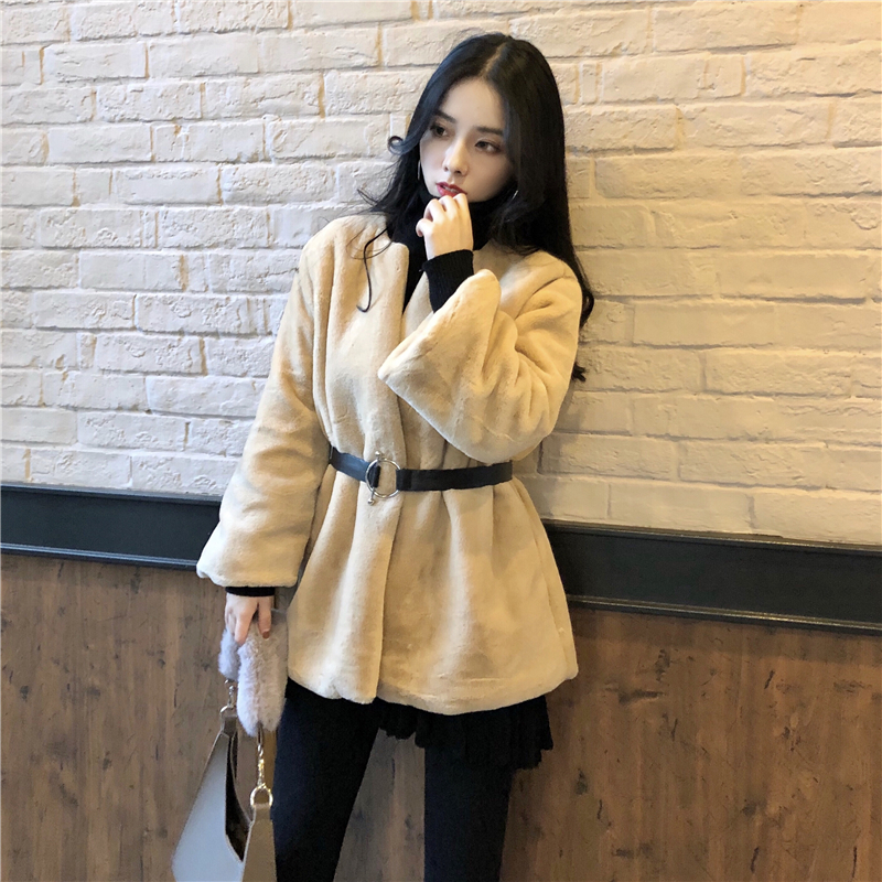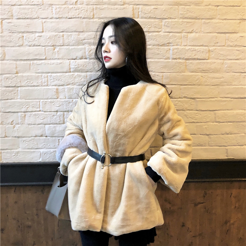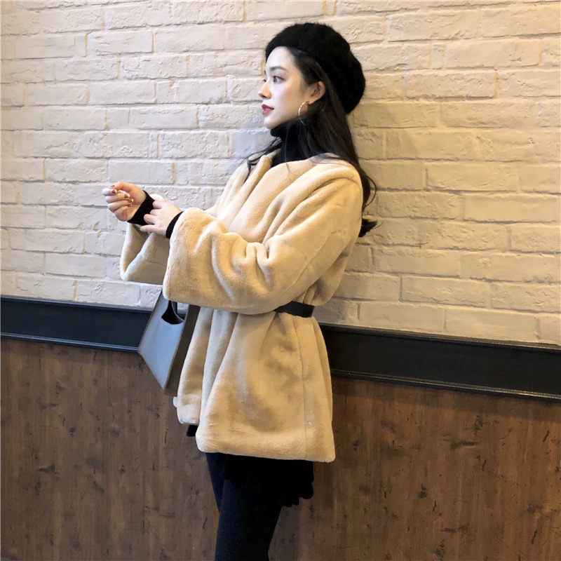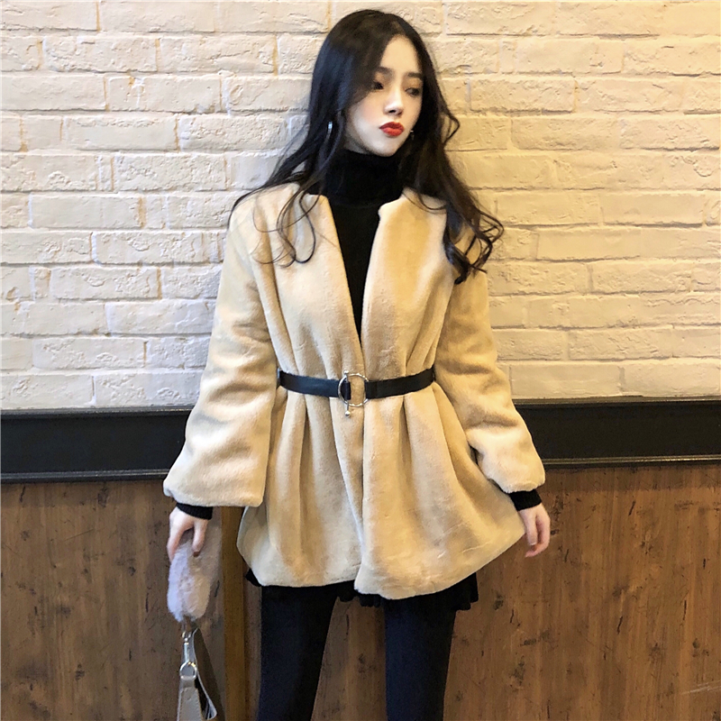 / 大衣女秋冬季時尚新款chic慵懶風復古百搭長袖開衫毛毛外套含腰帶