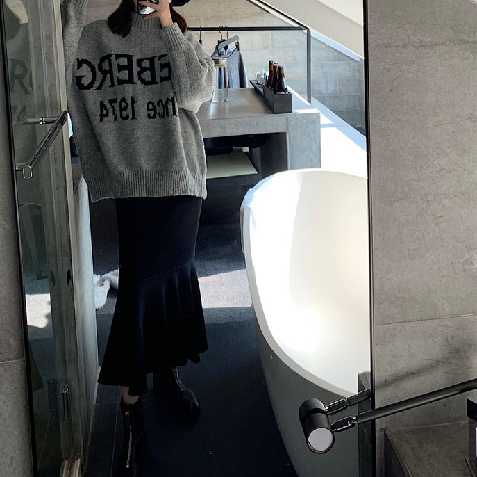 / 韓版寬松加厚半高領字母毛衣女秋冬2018新款+百搭高腰魚尾半身裙