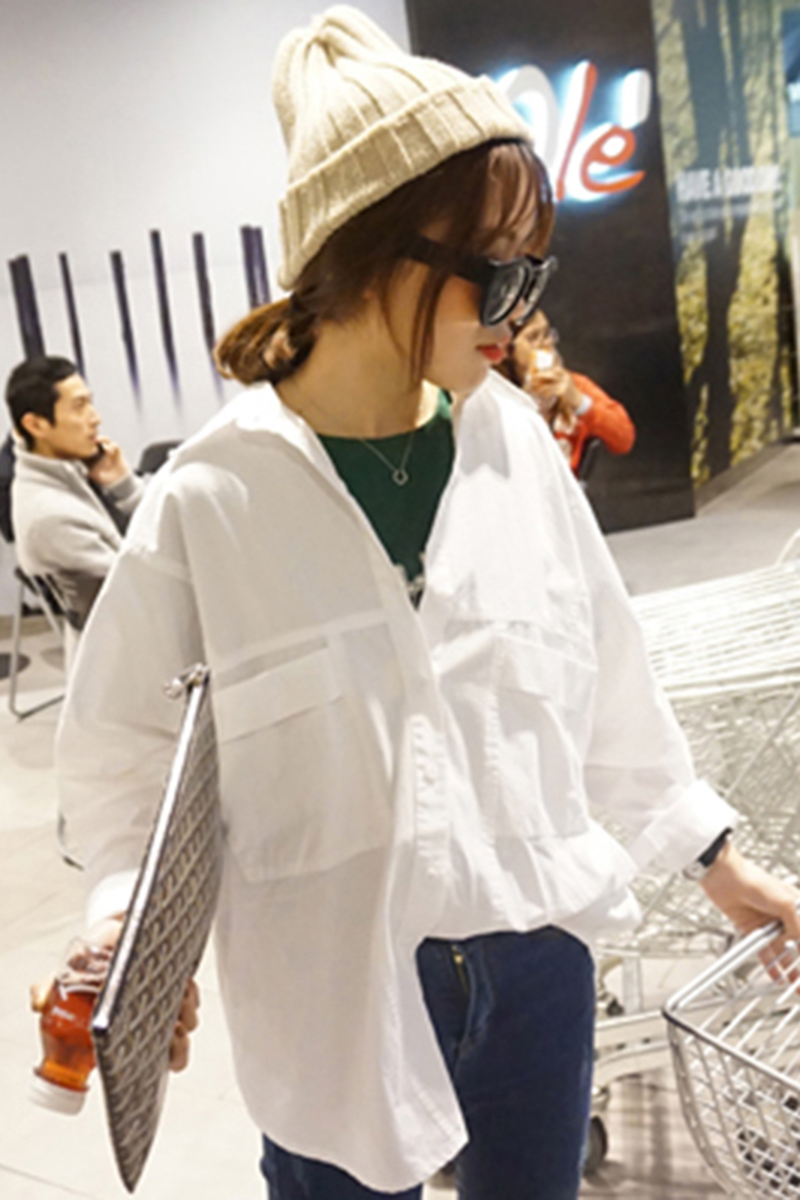 / 夏季新款女裝薄款學生休閑寬松顯瘦百搭長袖防嗮開衫襯衫外套女