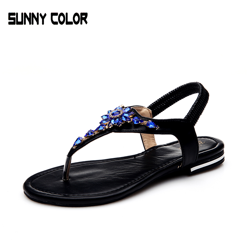 / 新款平底涼鞋女夏防滑休閑沙灘鞋甜美丁字平跟羅馬鞋
