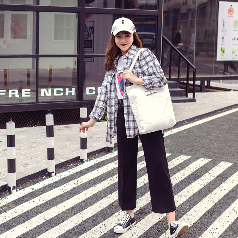 / 春裝新款女襯衫韓版寬松休閑學生長袖格子開衫襯衣上衣外套潮