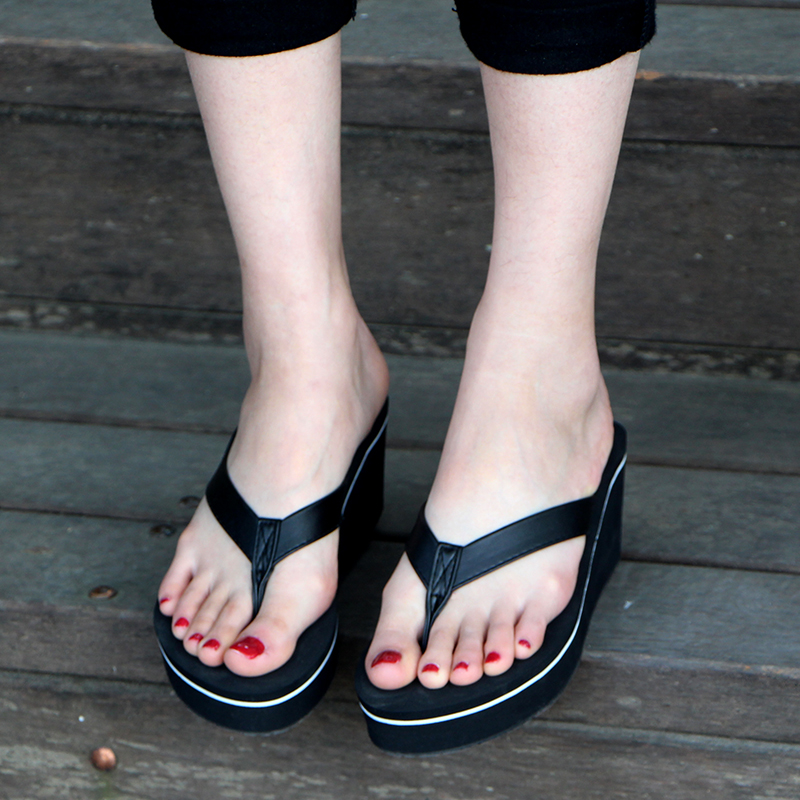 高跟人字拖女 夏季韓版新品厚底涼拖鞋防滑坡跟沙灘鞋