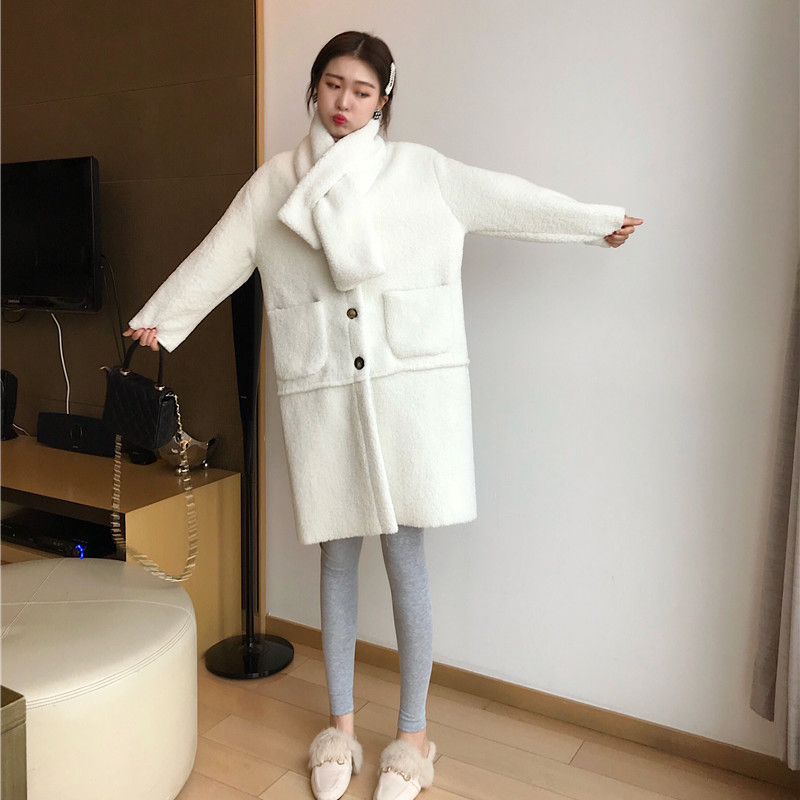 2018流行大衣女秋冬裝新款韓版寬松百搭中長款單排扣羊羔毛外套潮