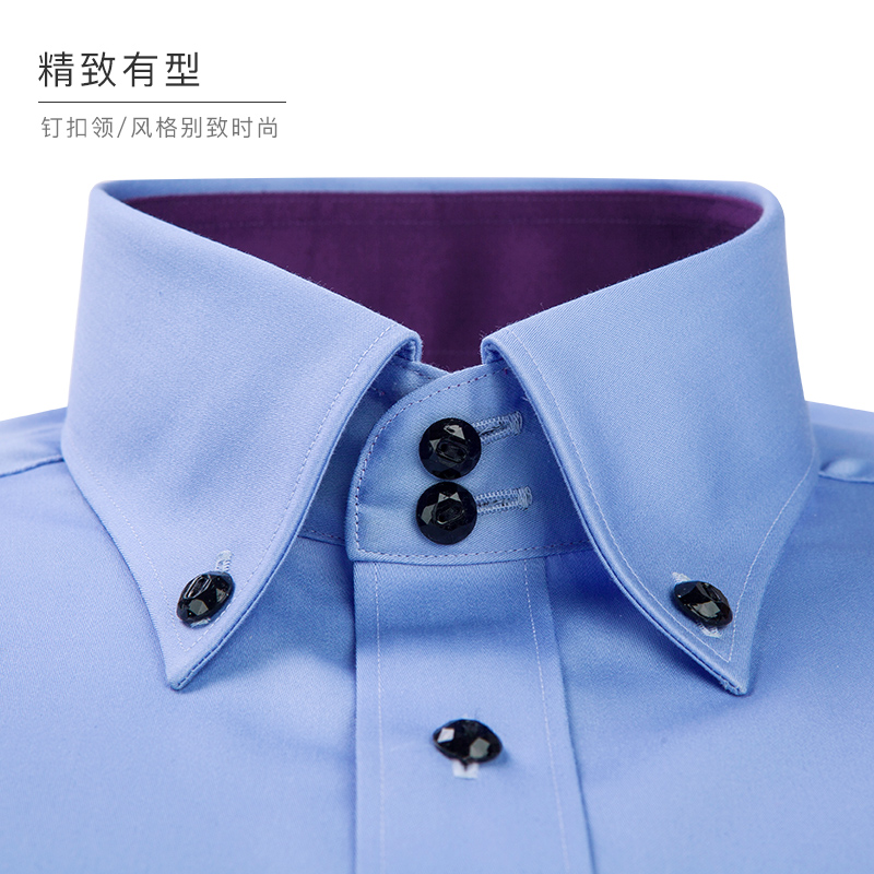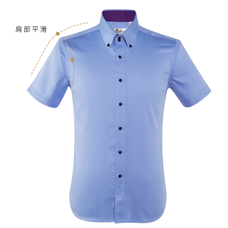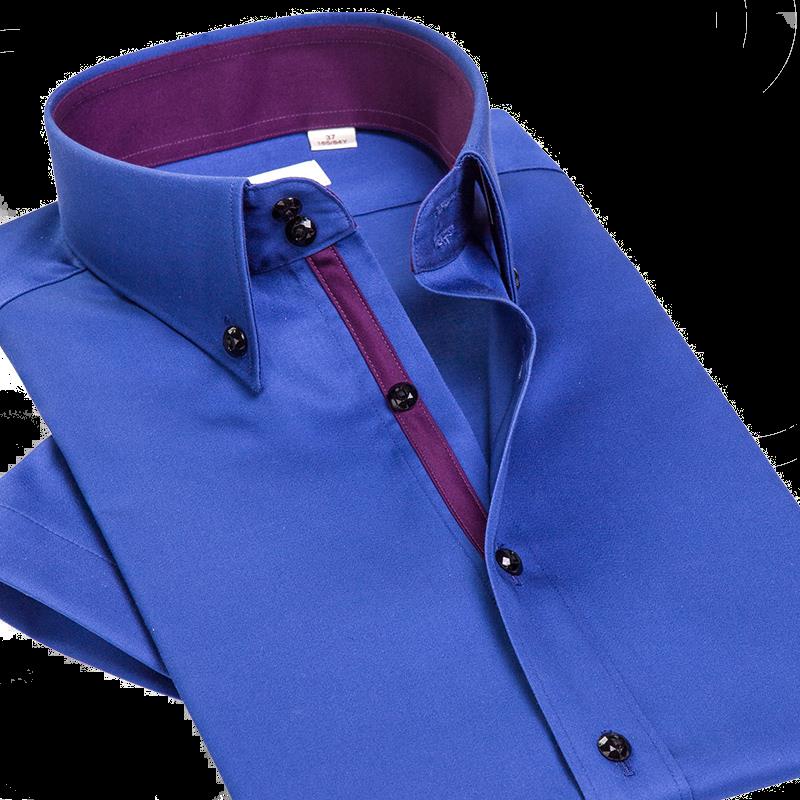 / 夏季純棉絲光棉藍色襯衫男短袖襯衣男士商務休閑修身韓版潮流薄