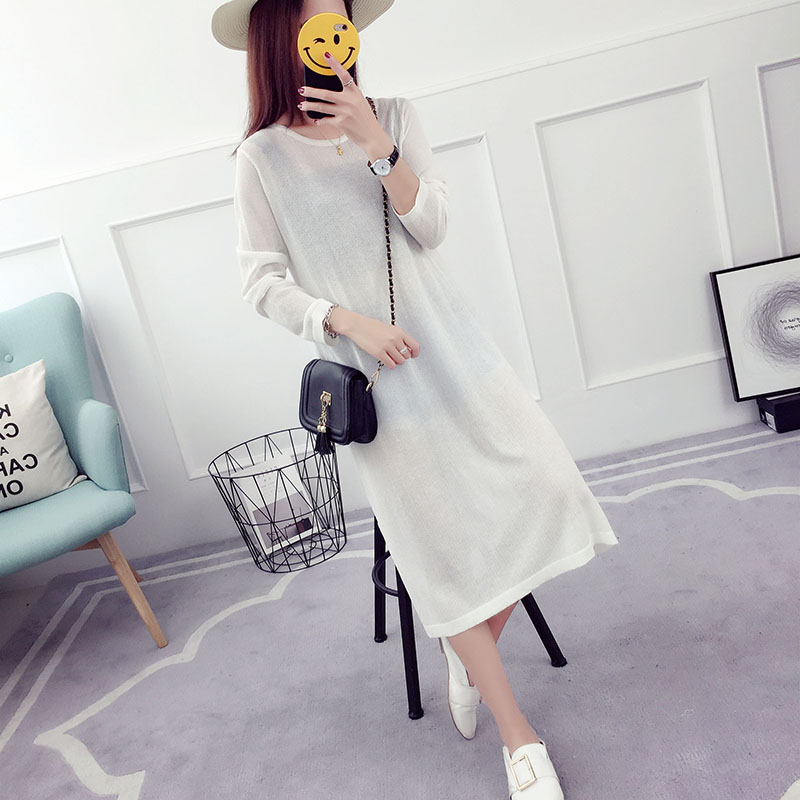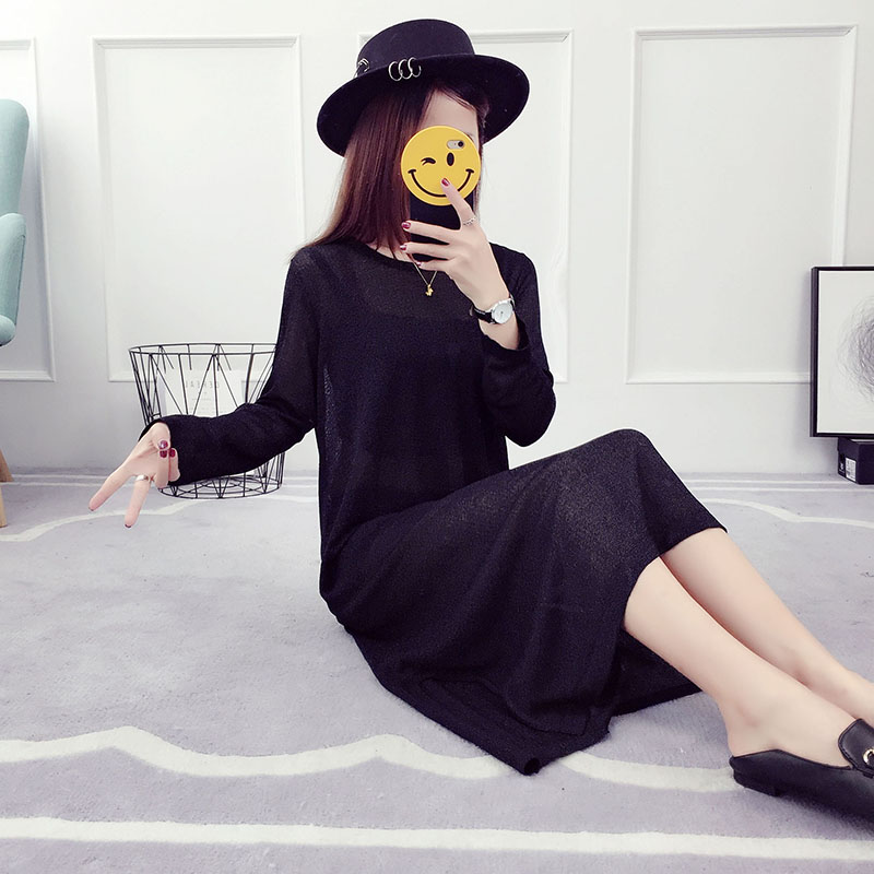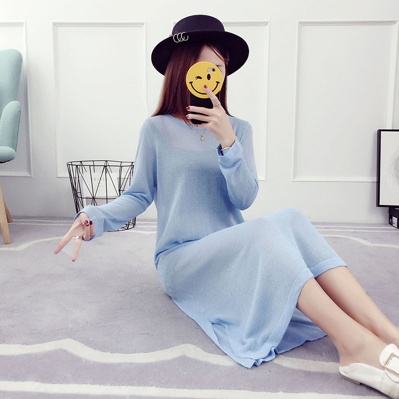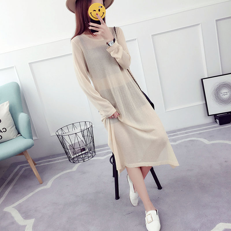 / 冰絲針織衫女套頭長袖寬松韓版打底衫春新款中長款薄款防曬衣