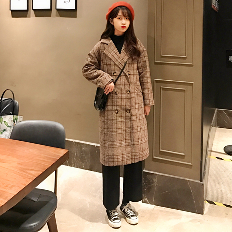 / 2018流行毛呢外套女秋冬裝新款赫本大衣小個子格紋風衣夾棉開衫潮