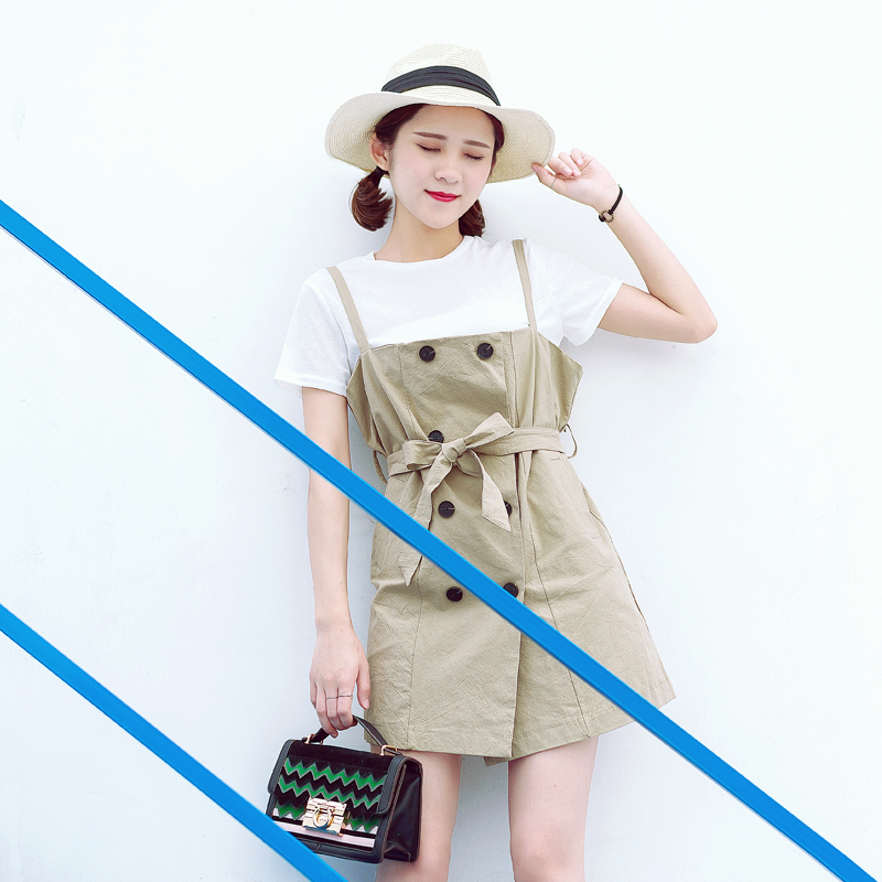純色T恤+吊帶裙的兩件套,相信這是你們日常中少不了的一套