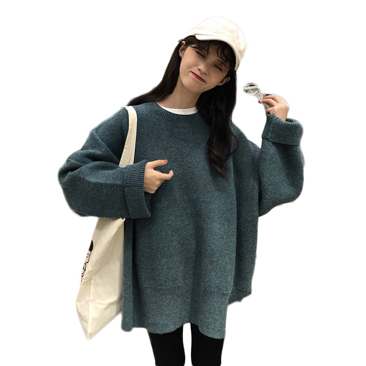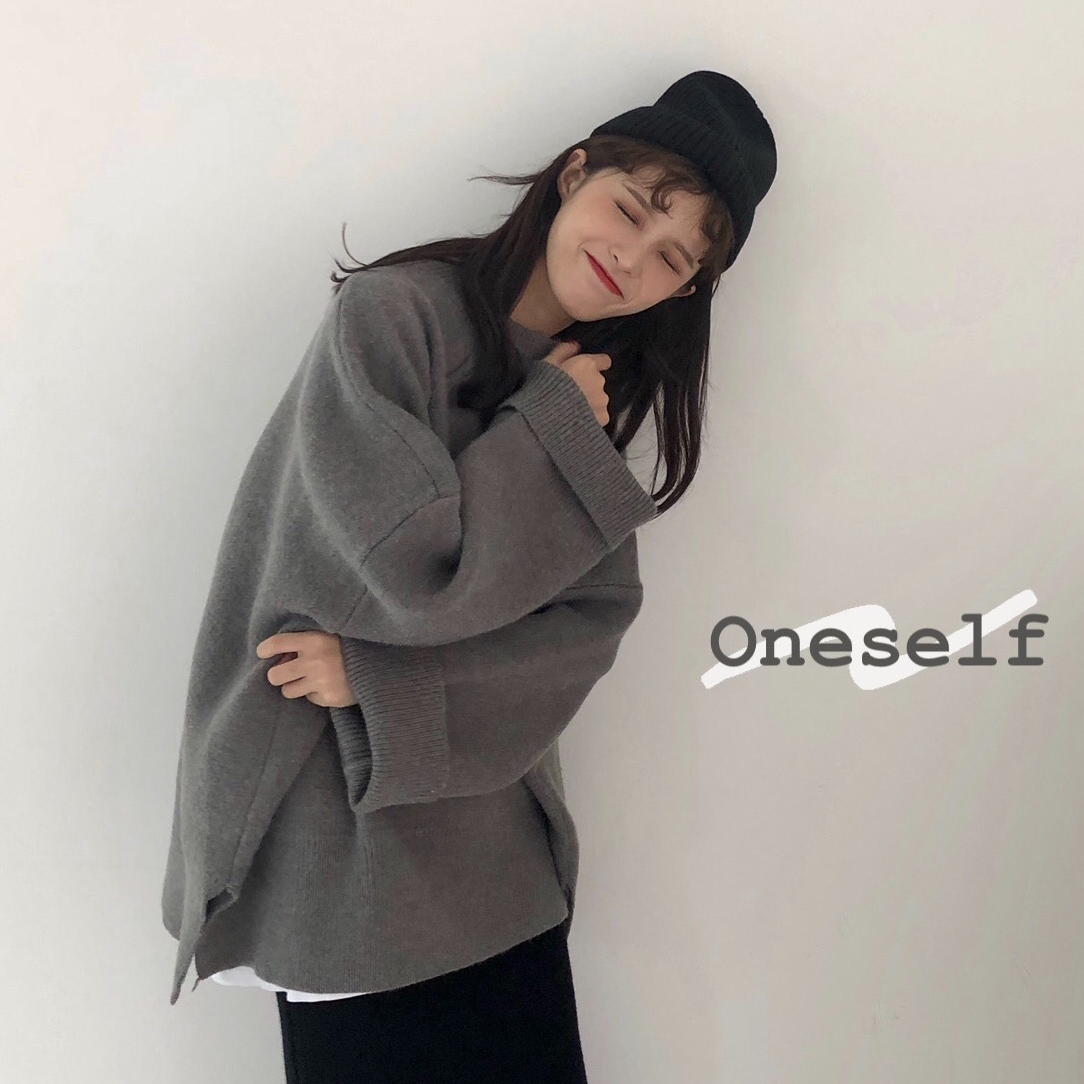 / 韓版簡約寬松厚實開叉套頭毛衣女2018新款慵懶風大袖子針織衫外套