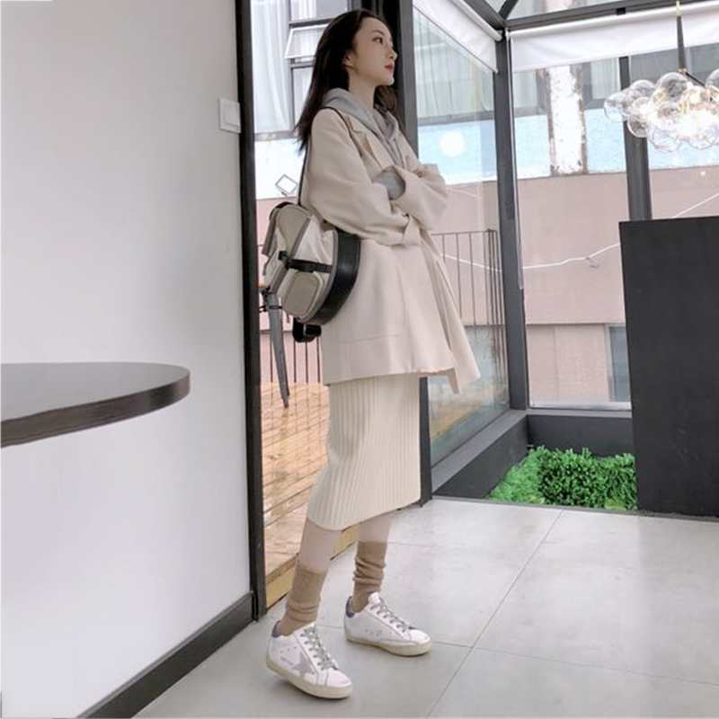 女神套裝秋冬新款2018流行毛呢外套加絨連帽衛衣高腰針織半身裙子
