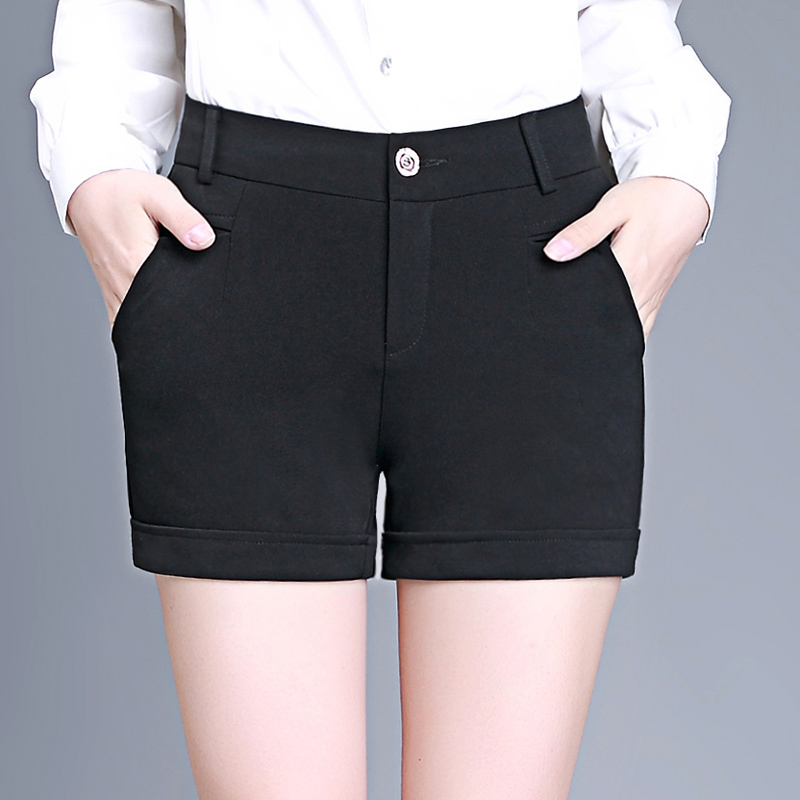 / 黑色短褲女夏薄款女褲彈力大碼休閑褲女褲短褲寬松闊腿褲子女熱褲