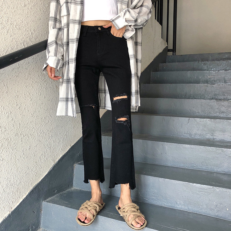 左右腳膝蓋處以及大腿位置 都是隨性破洞處理