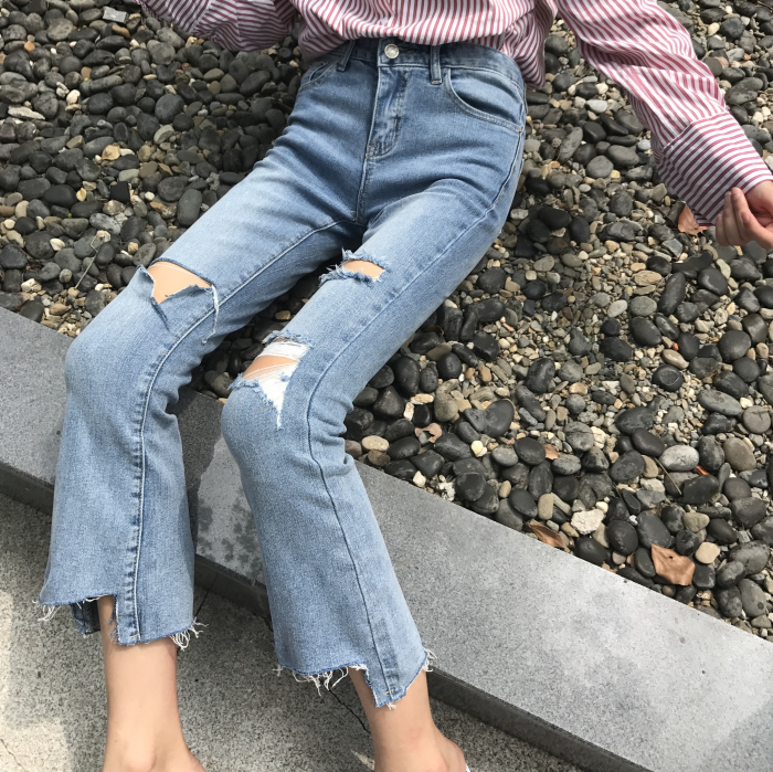 褲口也是蠻特別的 是那種不規則的缺口加毛邊處理 透出一種屬于青春的張揚