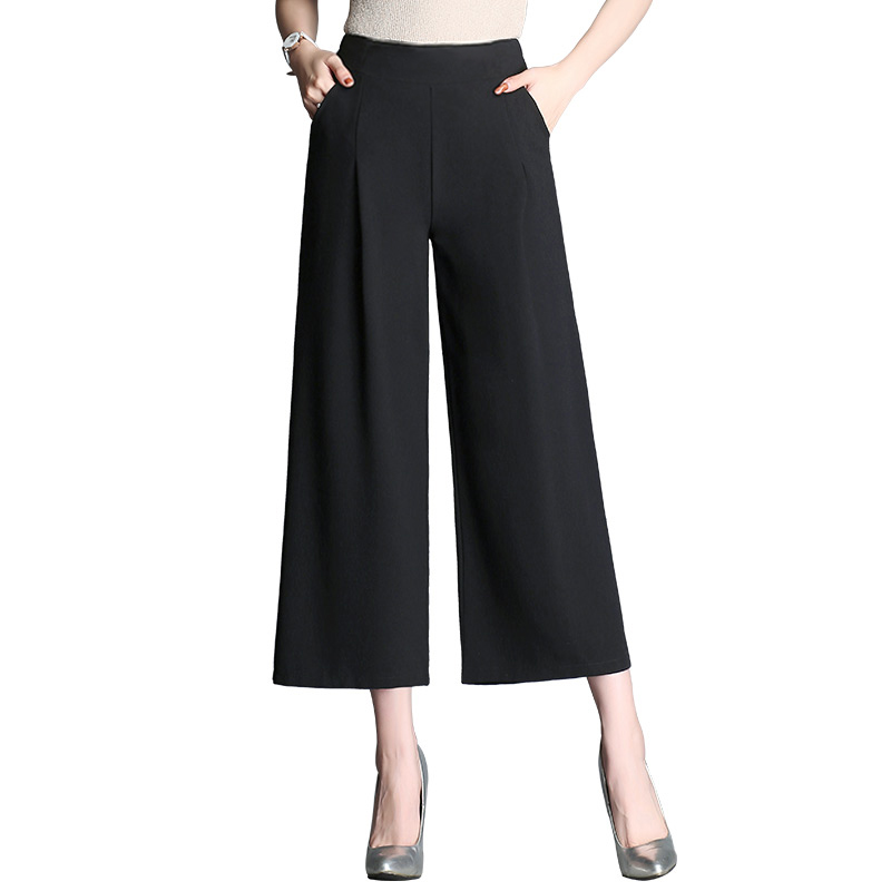 / 雪紡九分闊腿褲女夏新款高腰韓版寬松七分褲直筒女褲chic褲子
