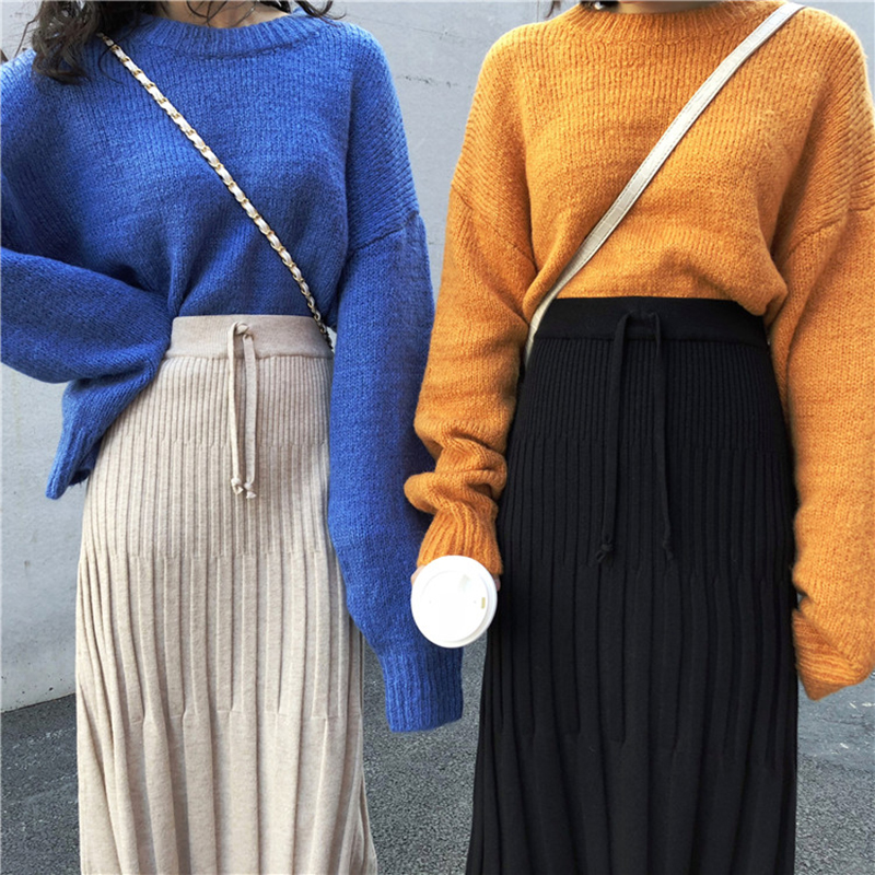 學院風高腰黑色針織半身裙子女秋冬裝新款復古顯瘦百褶A字中長裙