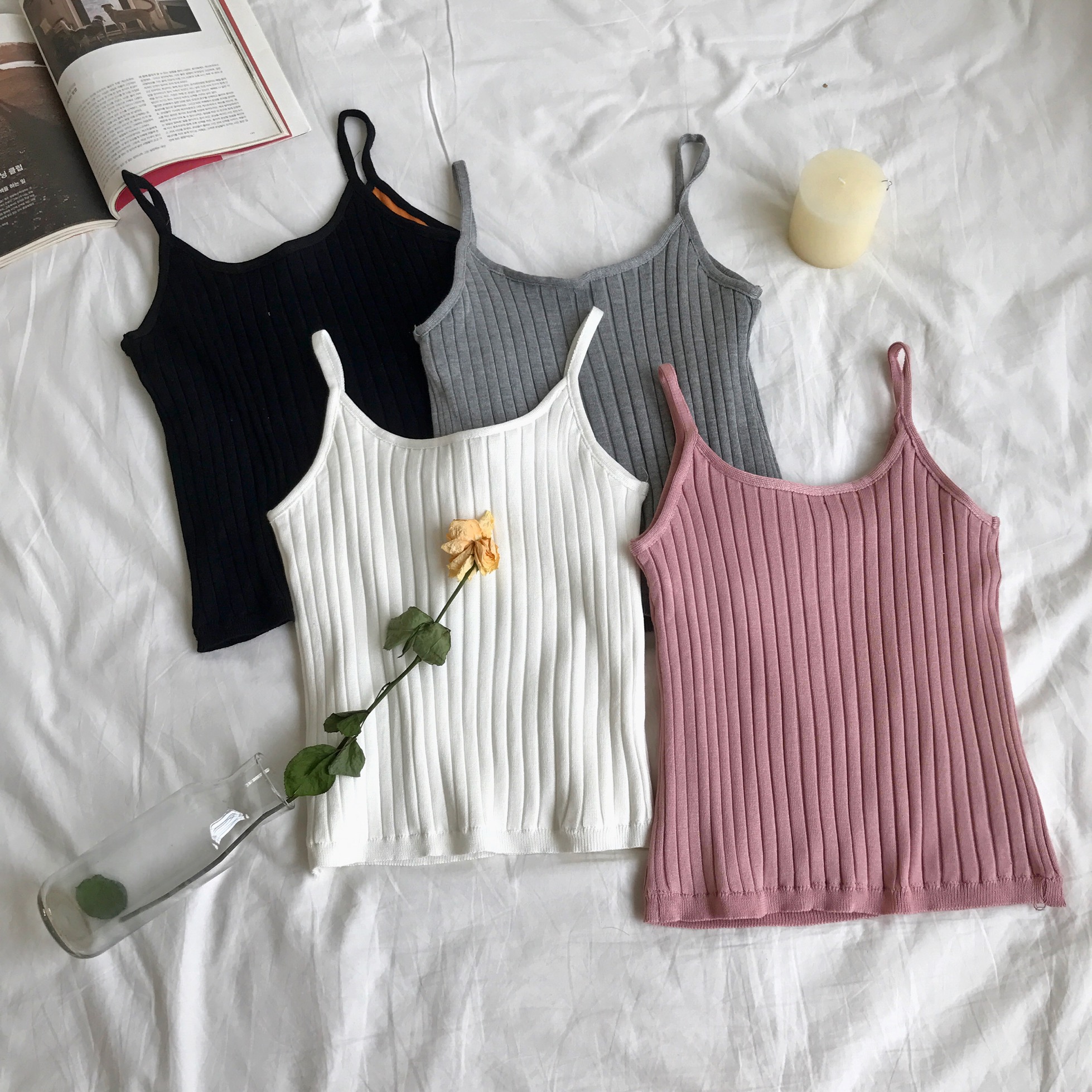 / 秋季韓版百搭加絨修身顯瘦彈力保暖短款打底內衣吊帶女內搭小背心