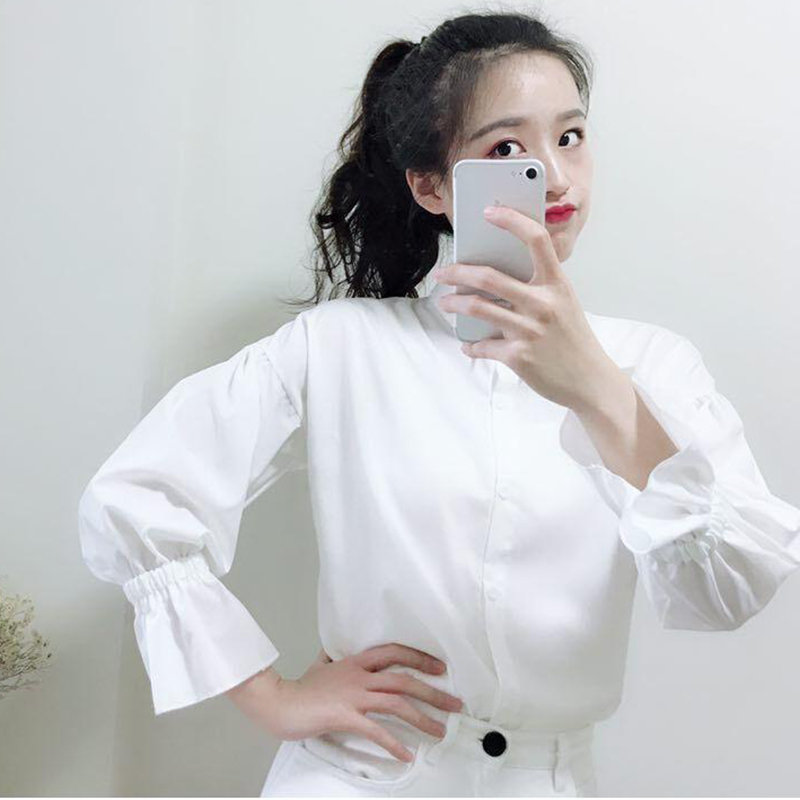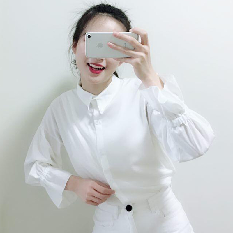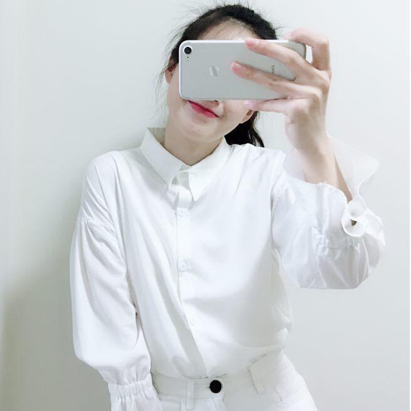 / 學院風長袖襯衫秋冬新款冷系女裝薄外套復古白色修身顯瘦短款上衣