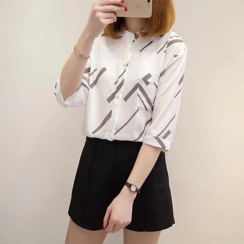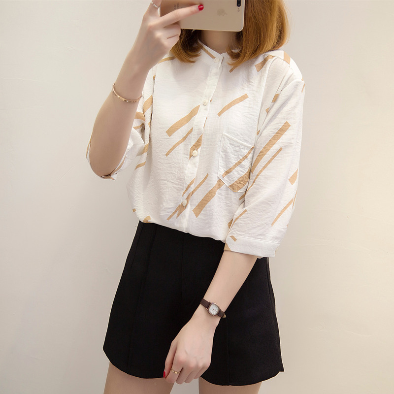 白色襯衣女寬松半袖韓范chic小清新上衣女夏裝襯衫新款女裝潮