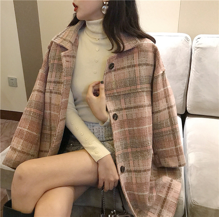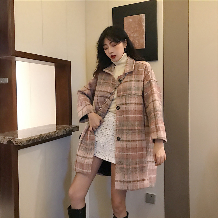 毛呢外套女冬季大衣女新款2018韓版呢子寬松加棉格子中長款上衣潮