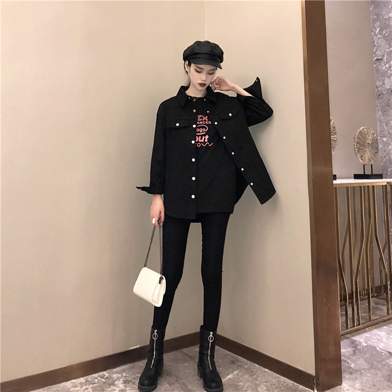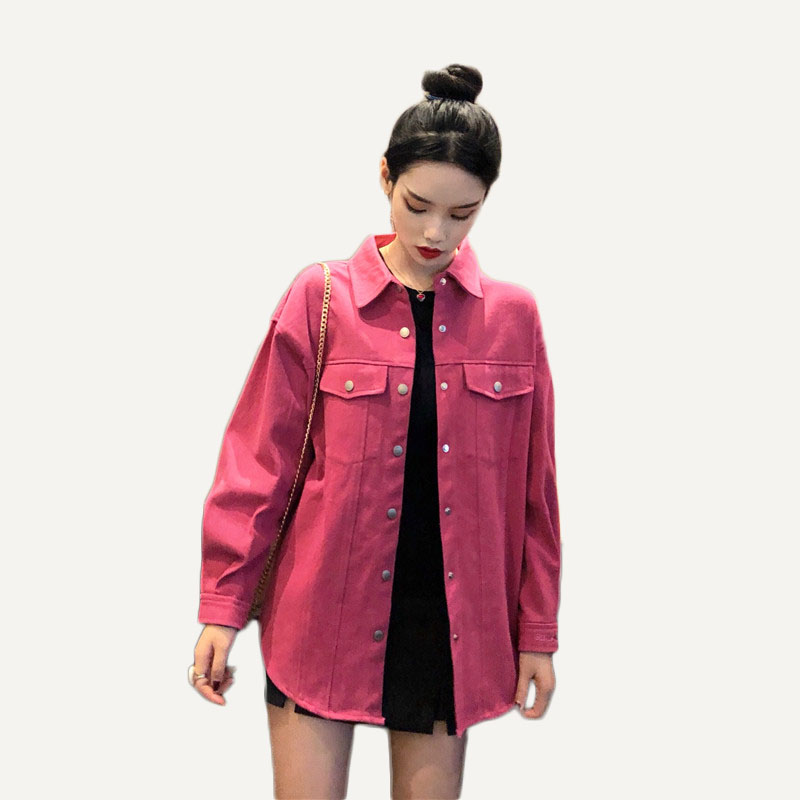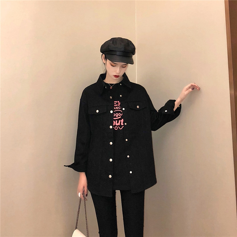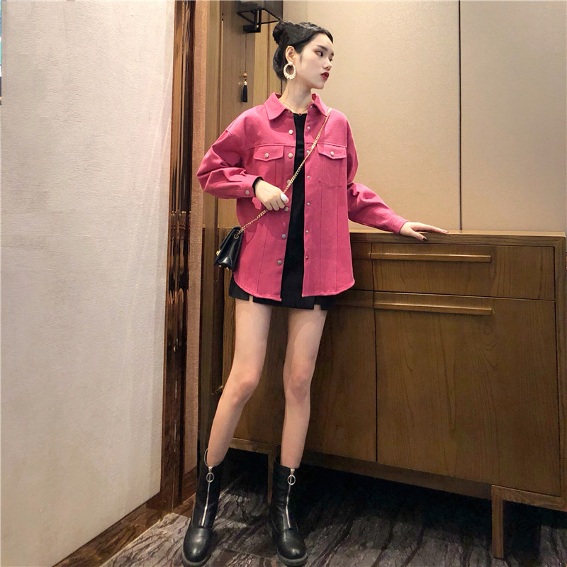 港味復古風外套女春秋2018新款韓版百搭款寬松顯瘦牛仔襯衫外套潮