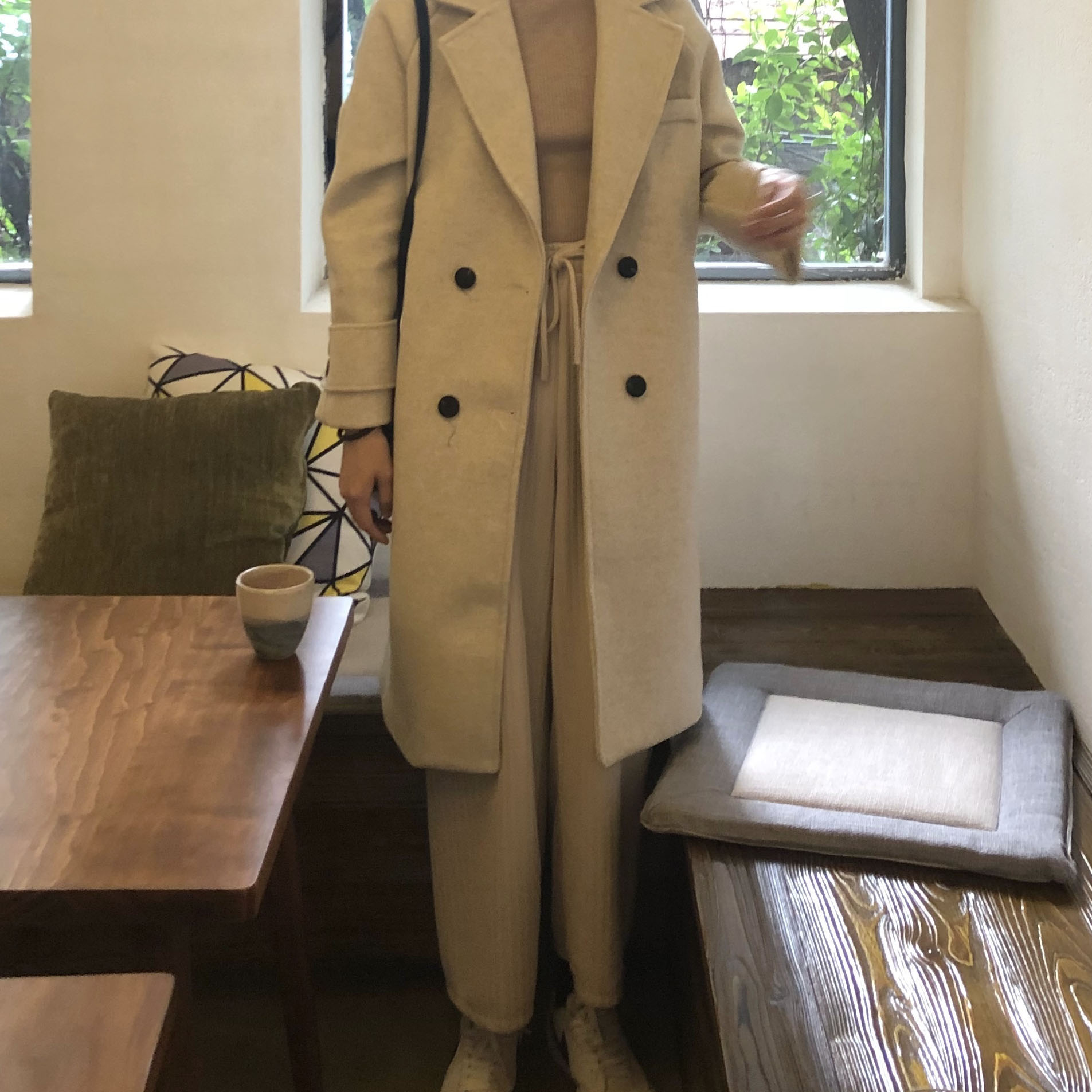 復古溫柔慵懶風隨意暖色系百搭寬松中長款毛呢外套女韓版呢子大衣