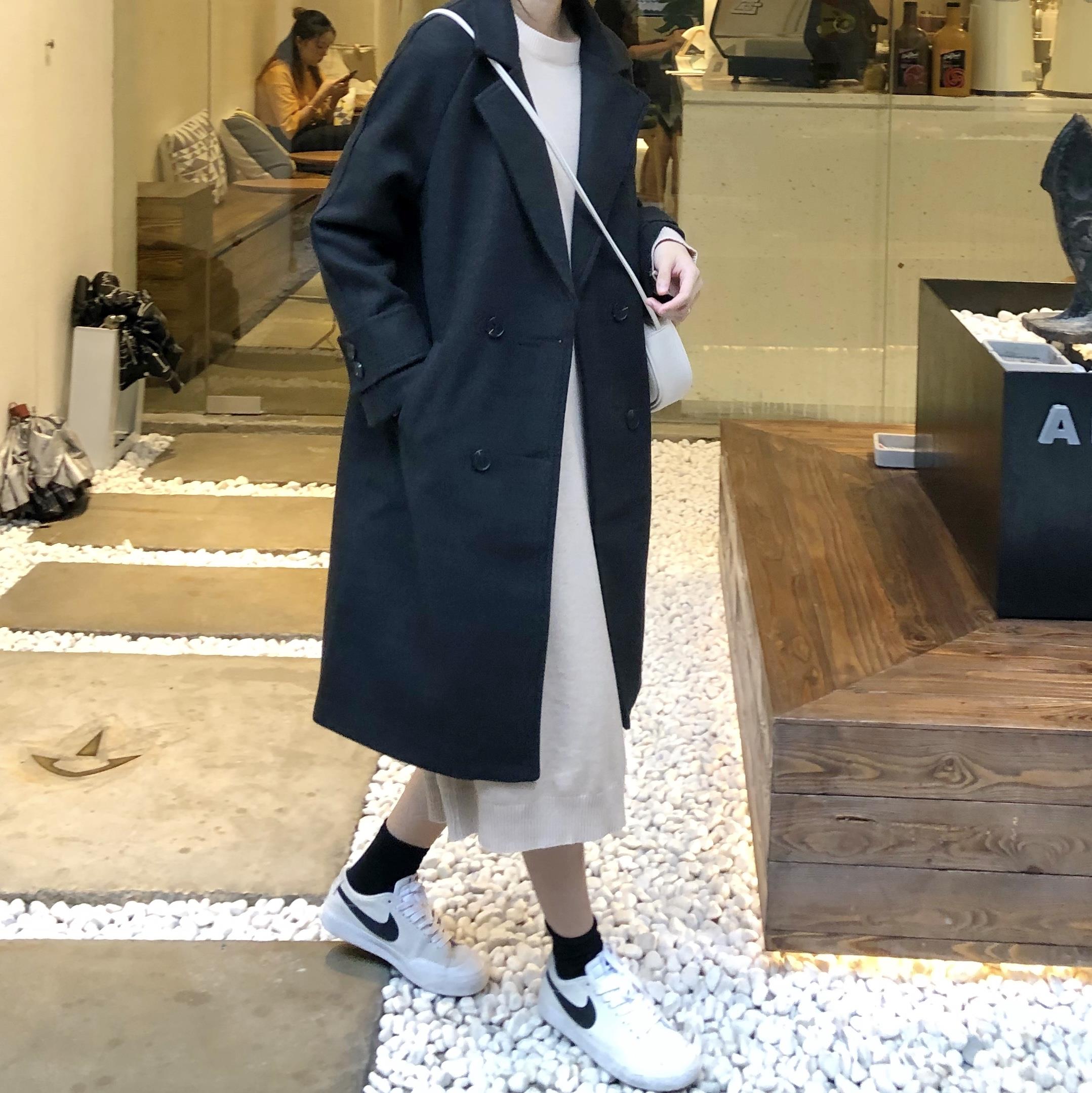 韓版長款毛呢外套女秋冬大衣女新款2018百搭加厚毛呢大衣外套女潮