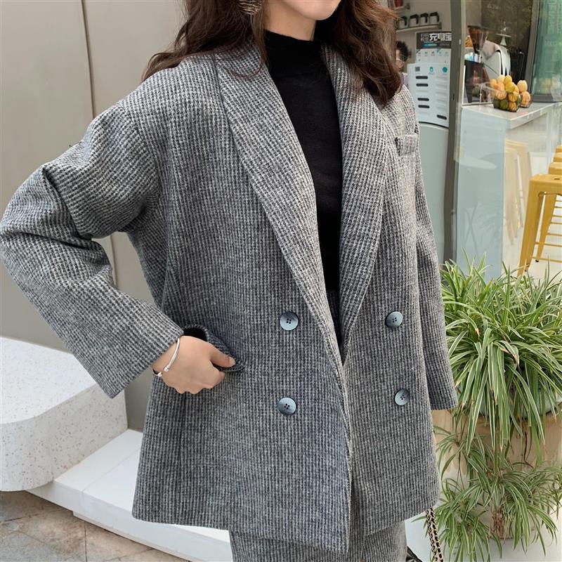 雙排扣和口袋的增加不會顯得造型太過基礎