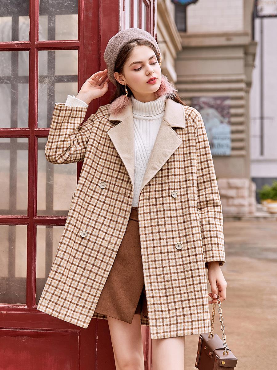 / MG小象冬季寬松毛呢外套女2018流行新款韓版顯瘦格子學生呢子大衣