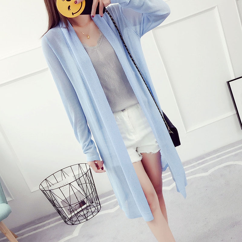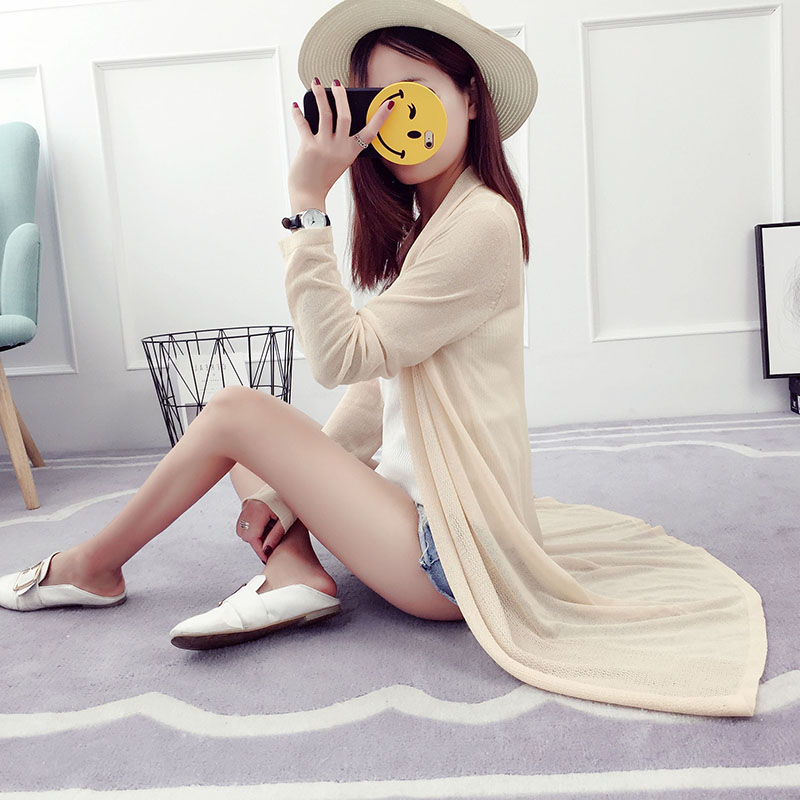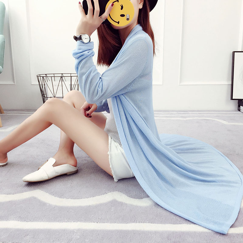 / 針織衫女開衫薄款外搭中長款鏤空罩衫披肩夏季百搭外套寬松空調衫