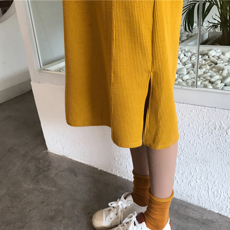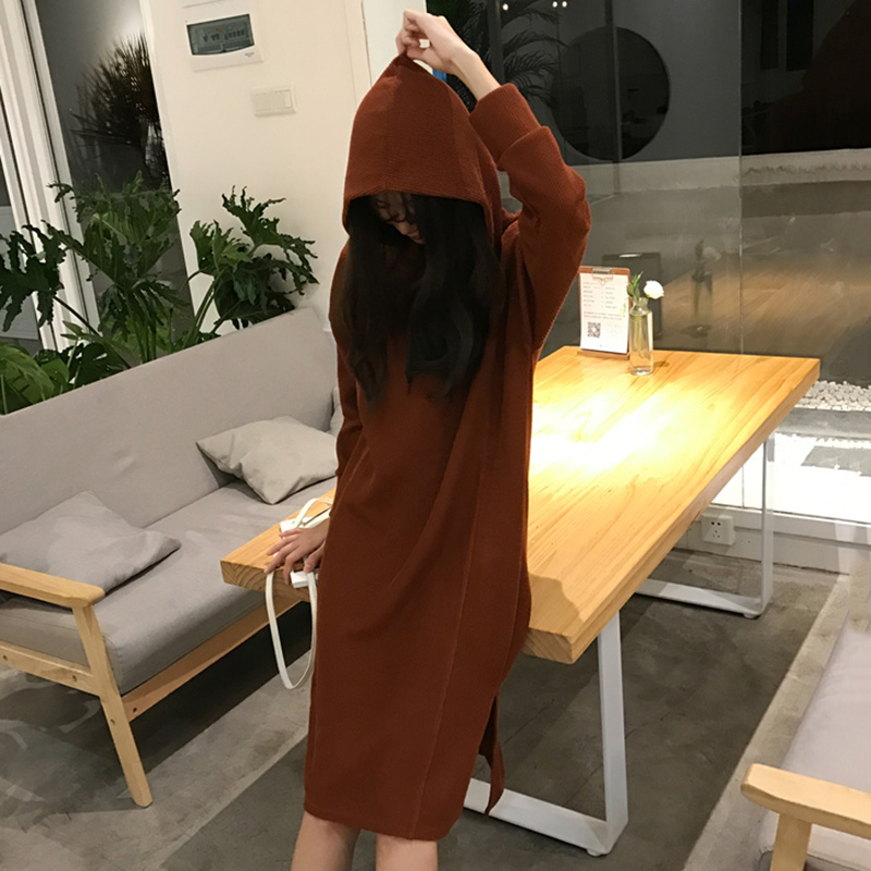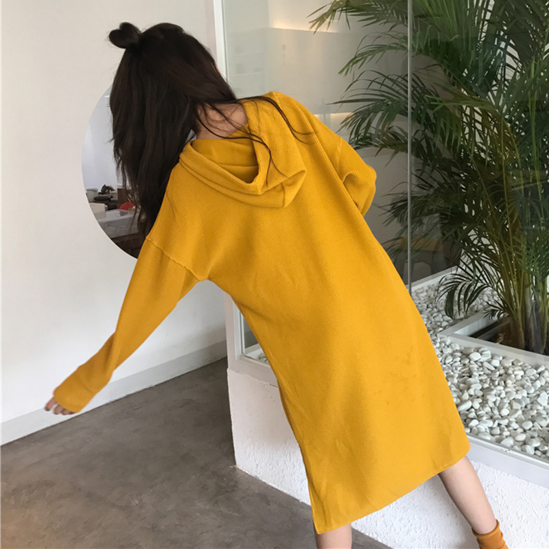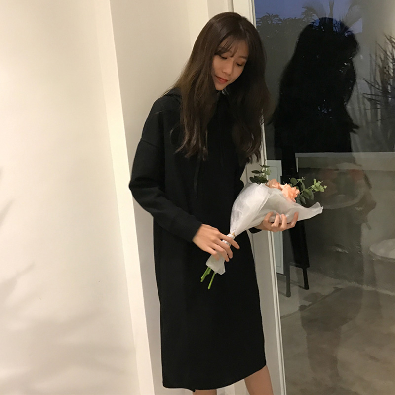 / 下擺開叉連帽衛衣裙秋裝女2018新款chic寬松長袖純色中長連衣裙子