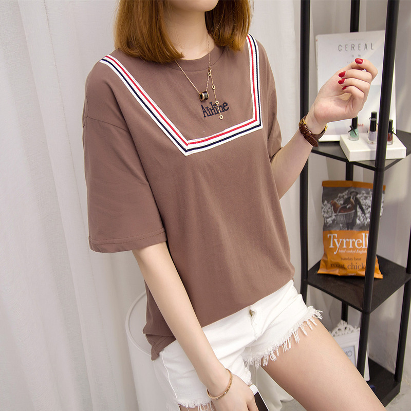 寬松t恤女白色短袖上衣女夏新款潮打底體恤衫韓版條紋百搭