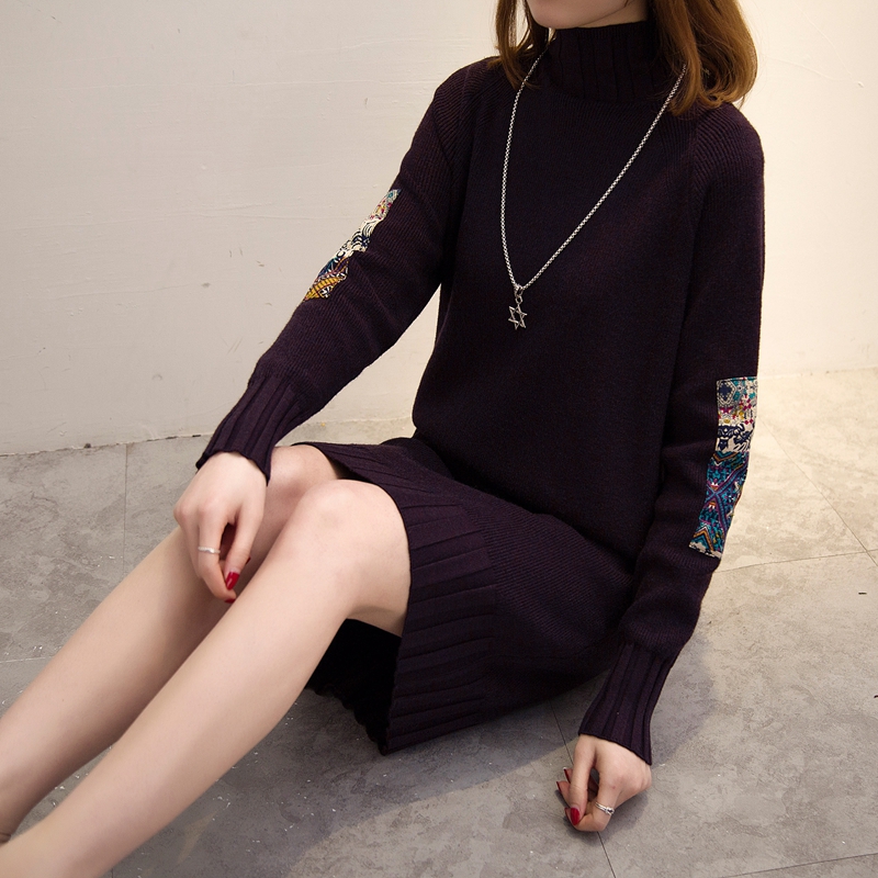 / 中長款套頭韓版寬松毛衣女秋冬毛線衣加厚半高領打底針織衫毛衣裙
