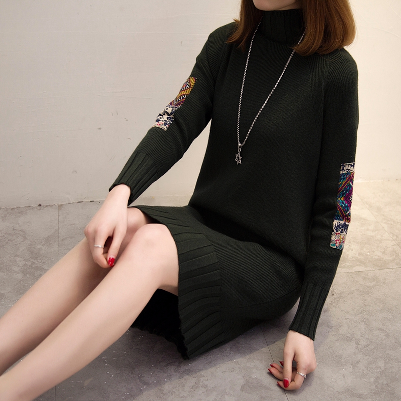 中長款套頭韓版寬松毛衣女秋冬毛線衣加厚半高領打底針織衫毛衣裙