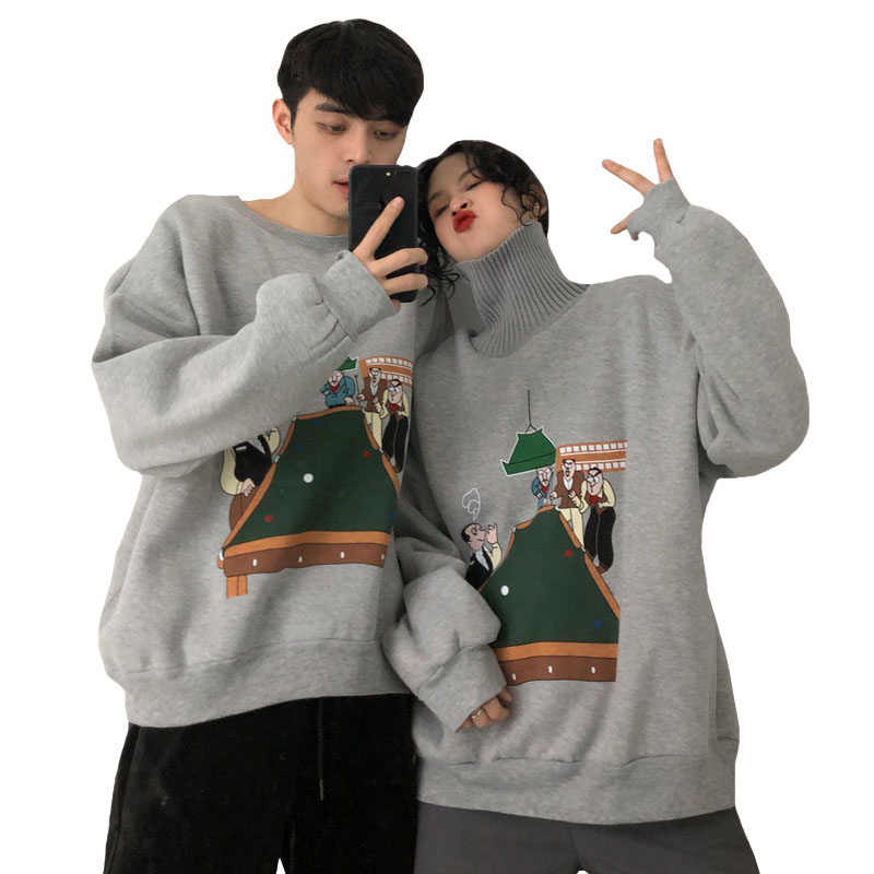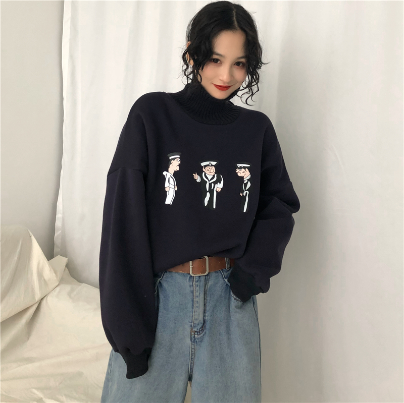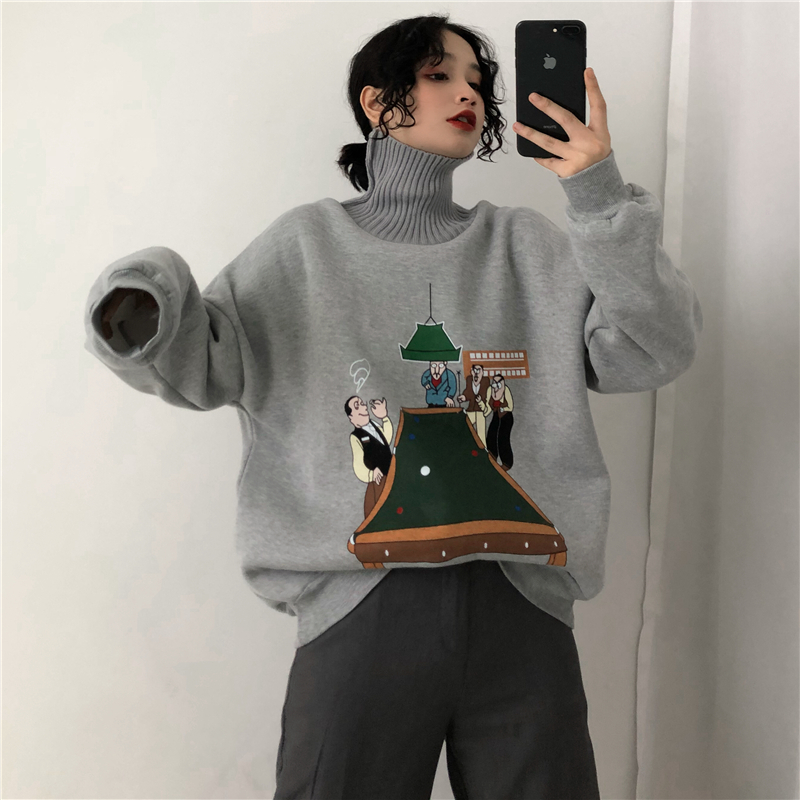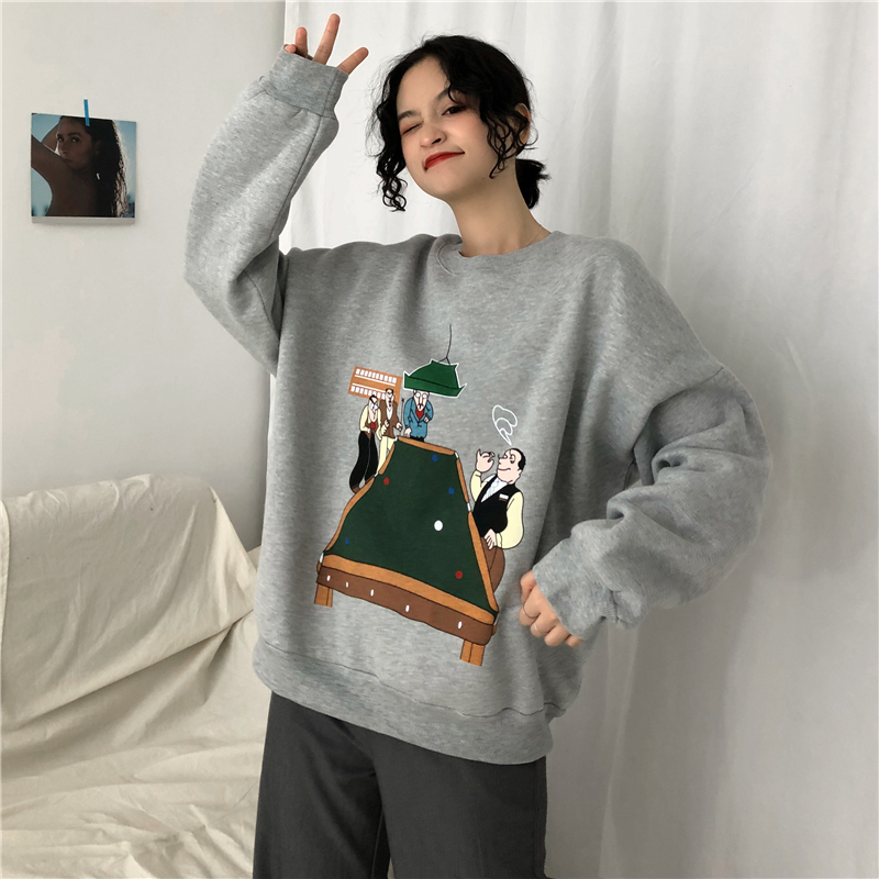 可可里小姐~韓版學生寬松慵懶復古印花套頭衛衣