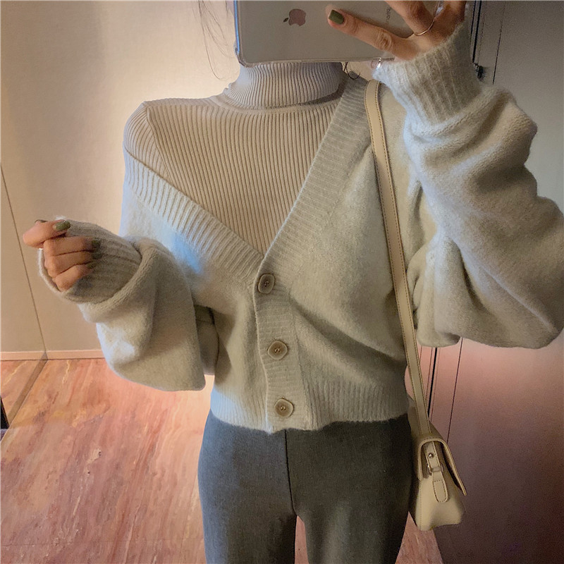 / 秋裝女2018新款套裝復古針織毛衣外套女+針織高領打底+純色闊腿褲